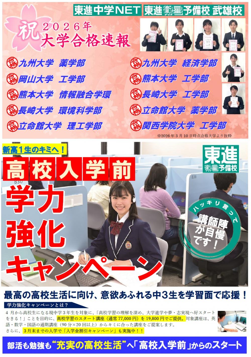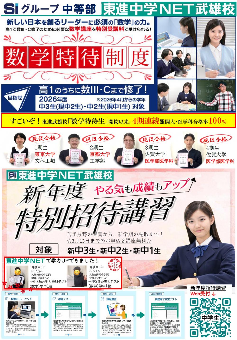 ⭐武雄青陵中進学予定者 新中1先取特訓講習⭐