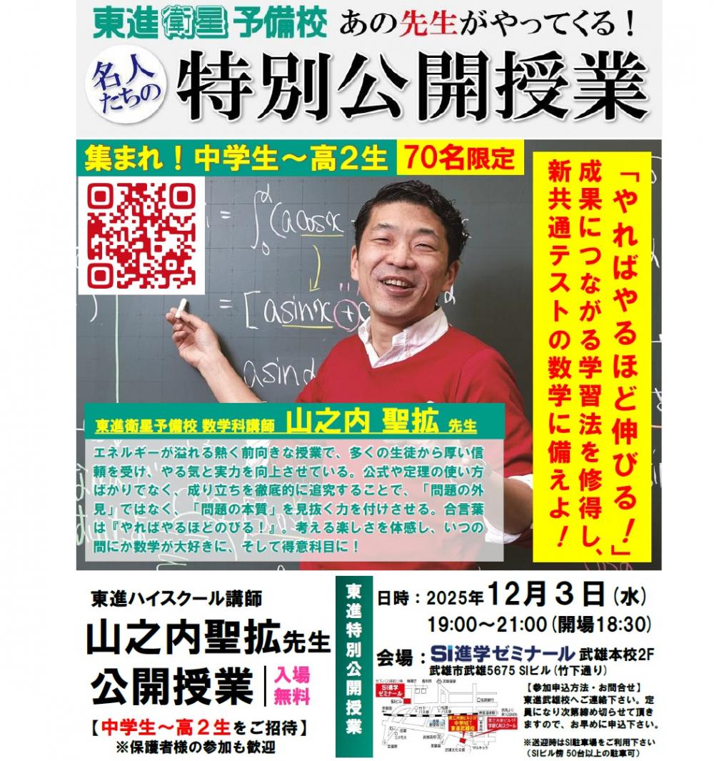 東進特別公開授業(12/3) SI進学ゼミナールで開催決定⭐